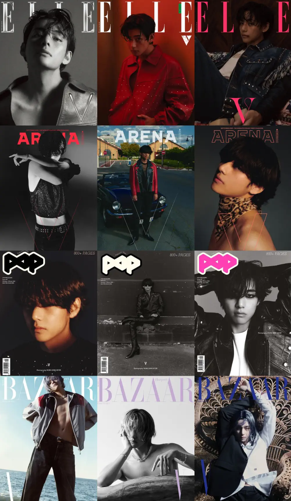 รวมถึงแบรนด์และโปรเจ็กต์อื่นๆ แทฮยองได้ปรากฏตัวบนปก 25 ปกใน 7 ประเด็นในเวลาเพียงหนึ่งปีกว่าๆ นับตั้งแต่ BTS หยุดพักงานกลุ่มเพื่อมุ่งเน้นไปที่งานเดี่ยวของพวกเขา